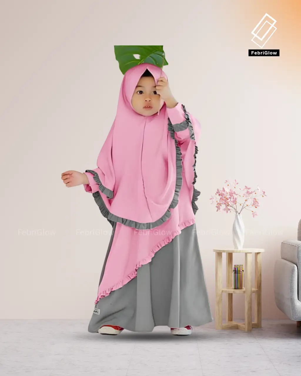 নূরানী বেবি বোরকা – গোলাপি (হিজাবসহ ফুল সেট)